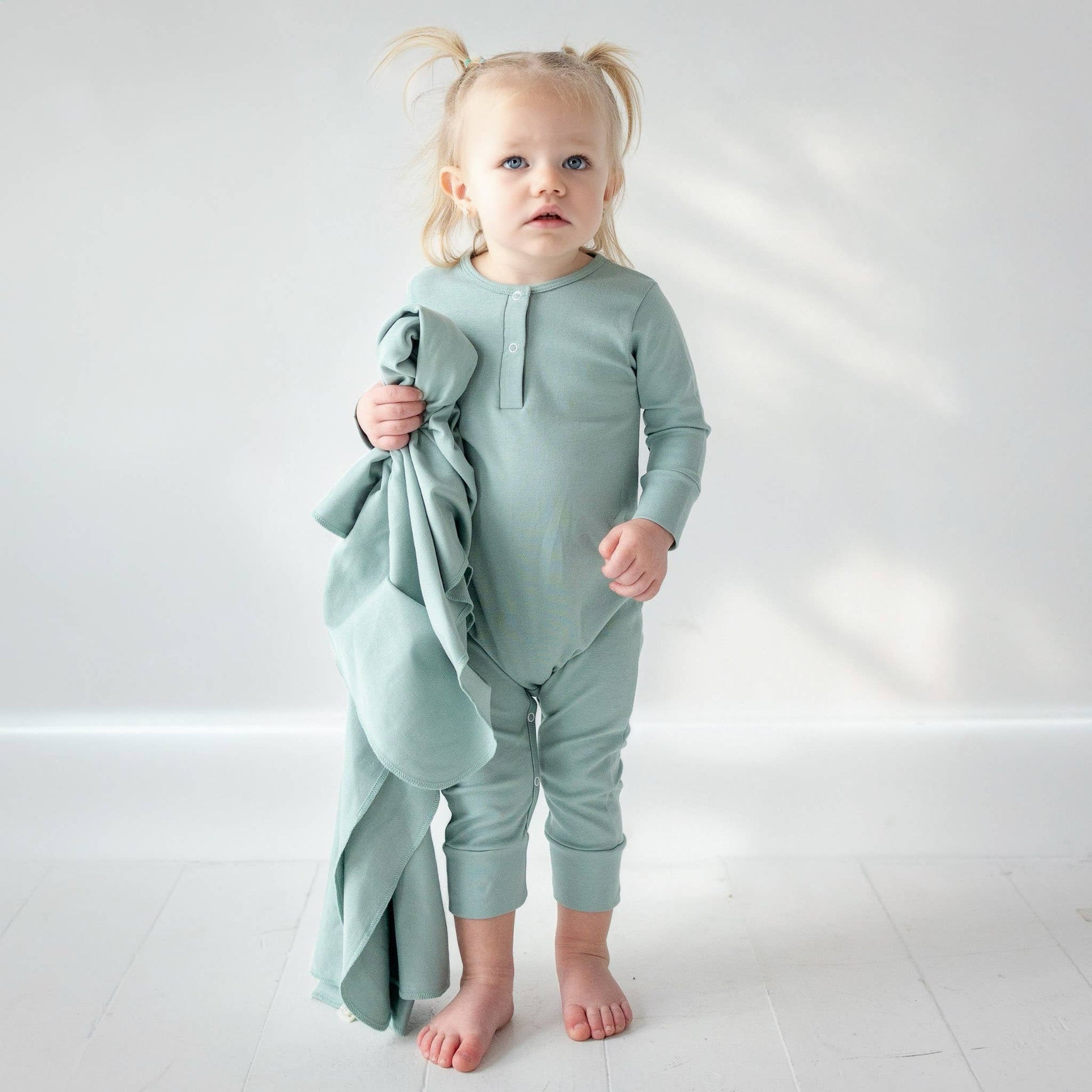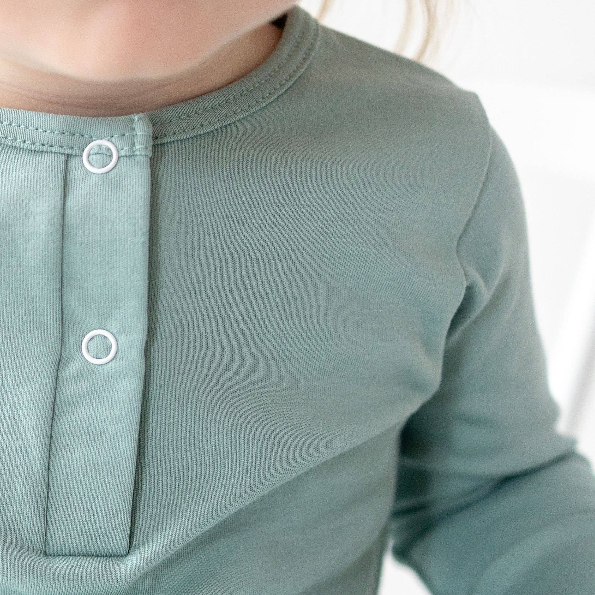 Luna & Arlo Pima Cotton Playsuit – Moss Green Effortless and cozy, the Luna & Arlo Pima Cotton Playsuit in moss green is crafted from premium 100% Peruvian Pima cotton. This modern one-piece features a henley front and hidden snaps for easy changes, while the soft, gender-neutral tone makes it perfect for monogramming or embroidery. A versatile piece for retailers—great alone or styled in a bundled display with matching accessories. Details: 100% Pima cotton, made in Peru Henley neckline with snap placket Inseam snaps for easy diaper access Great for personalization